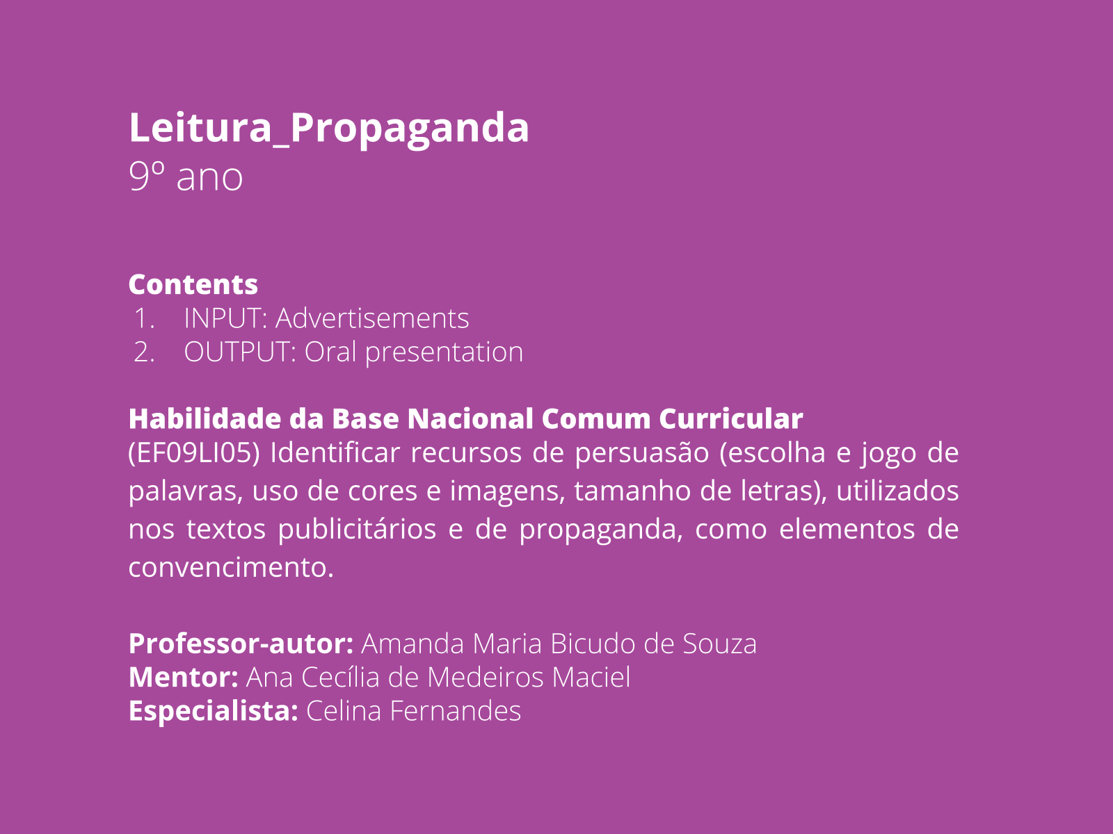 Plano de Aula - 9º ano - Inglês - Elementos de convencimento em propagandas